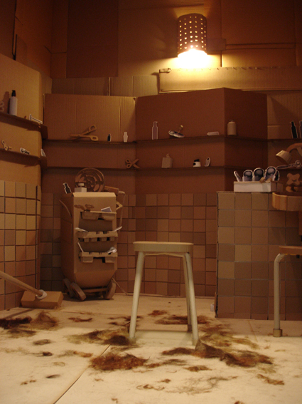 Kartonsalon |Uitmarkt | Installatie 280d x 270B x 270H cm | m.m.v. haarstylisten: Chantal Garden, Pur Thijs, Patrick Moonen