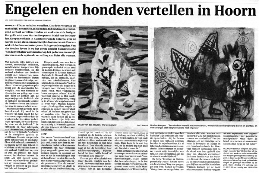 Publicatie in Noordhollands Dagblad 13 ferbuari 2004 | Martha Dirkmaat Planting |Engelen en honden vertellen in Hoorn | artikel lezen klik voor pdf